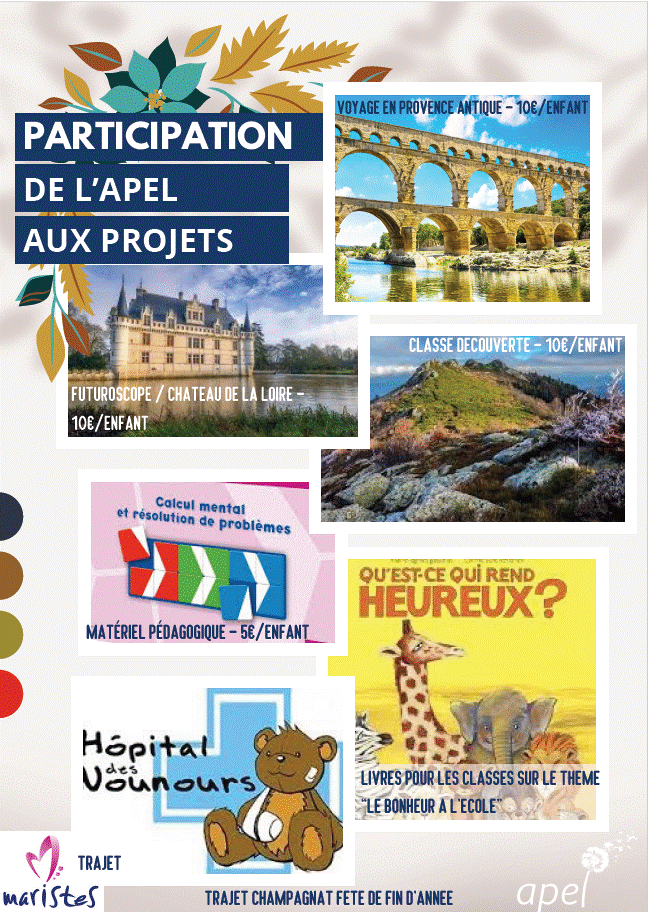 Association des Parents d' Élèves de l'Ensemble scolaire "les Maristes - St Etienne" Siège social : 10 place de l'abbaye 42100 Saint Etienne Email : apel@maristes-ste.fr |